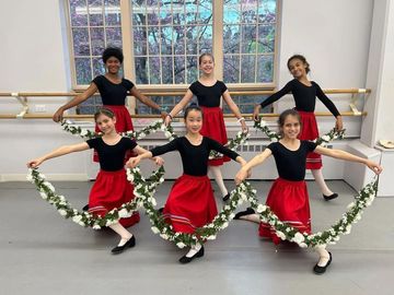 Performing pieces from the school repertoire including classical ballet, modern dance, and student choreography.